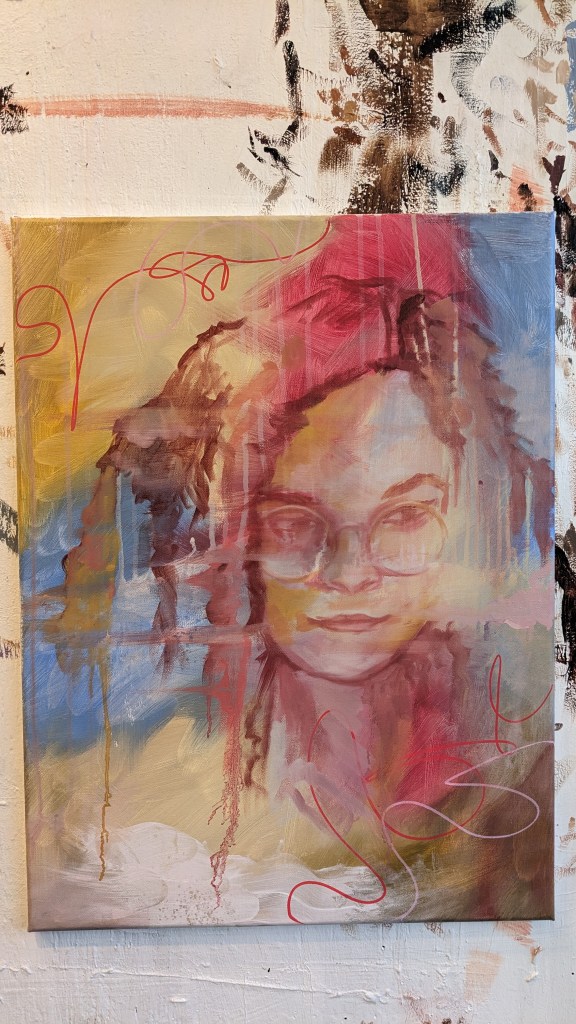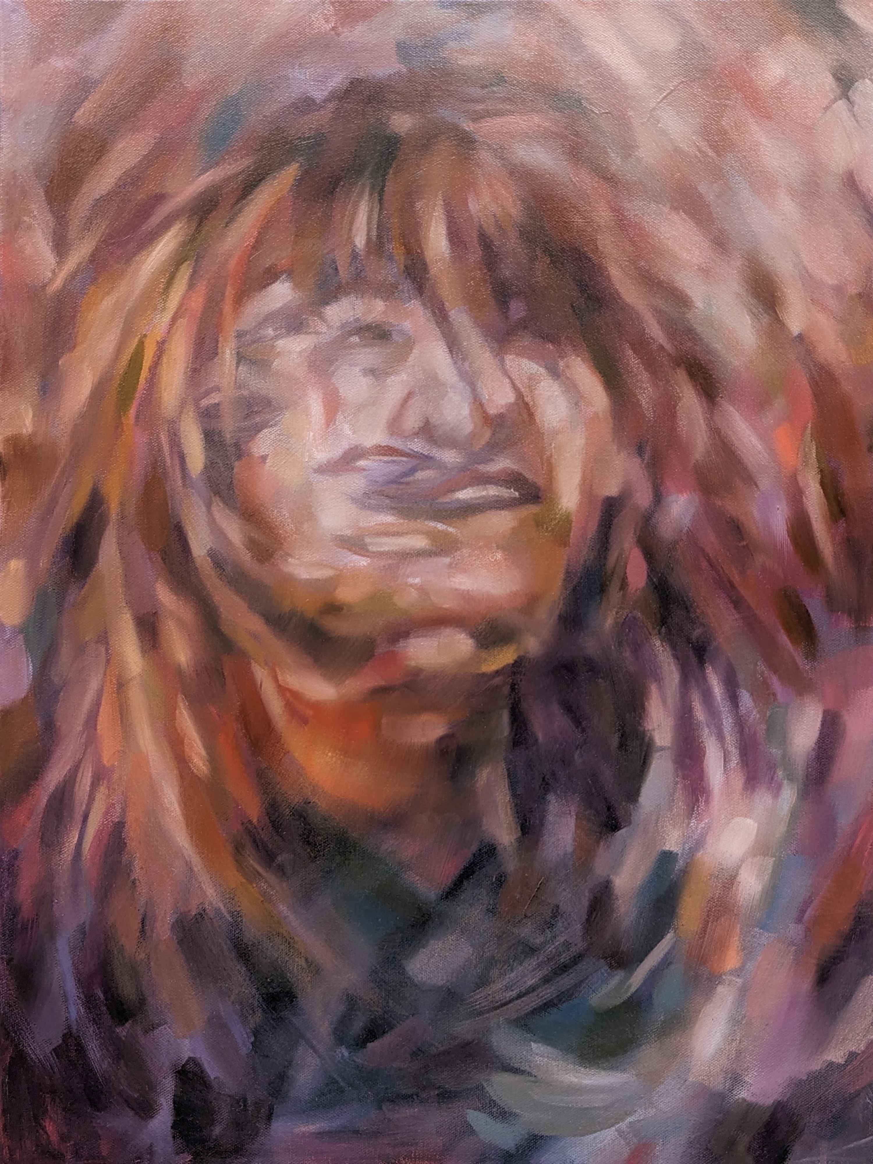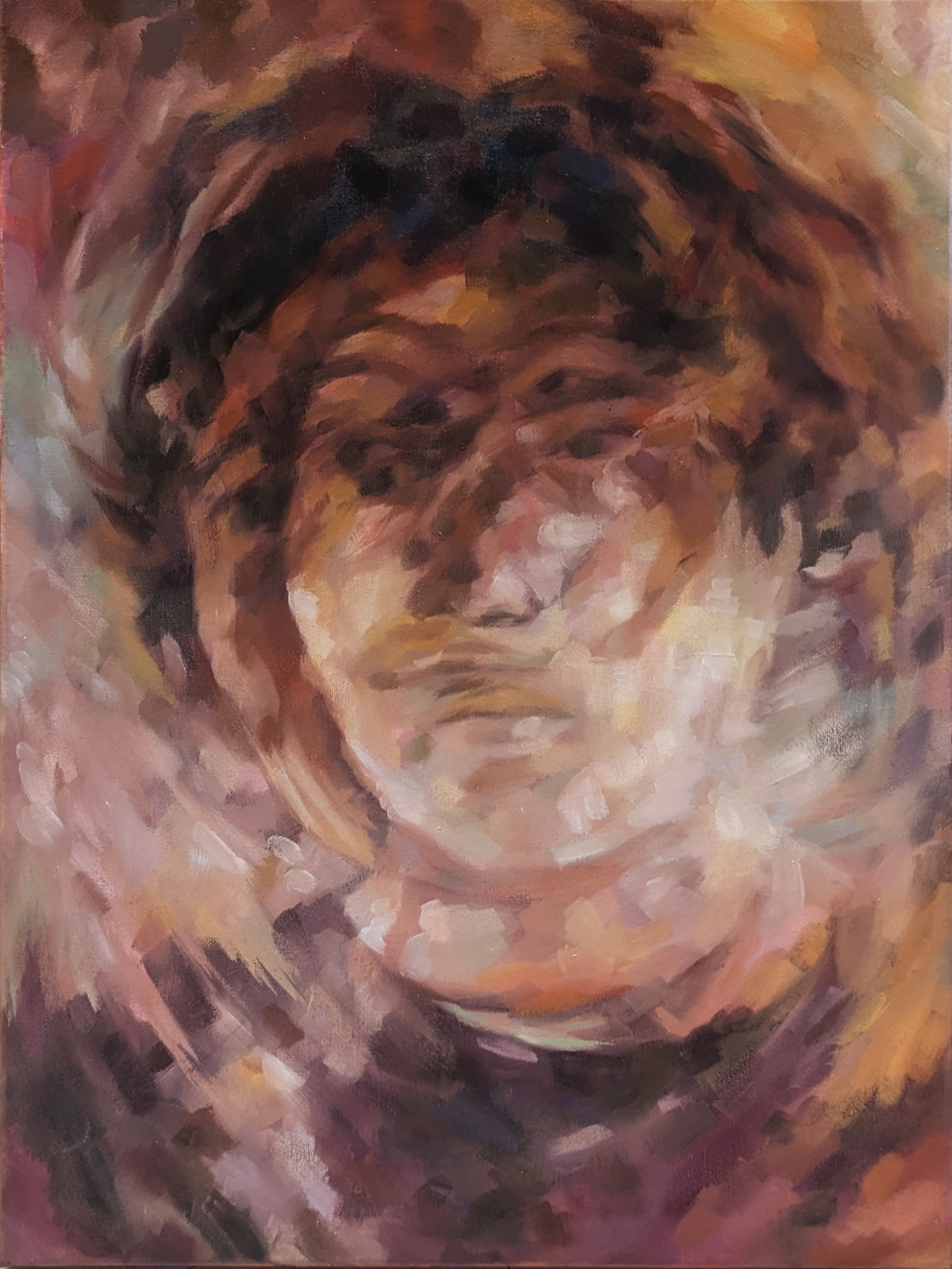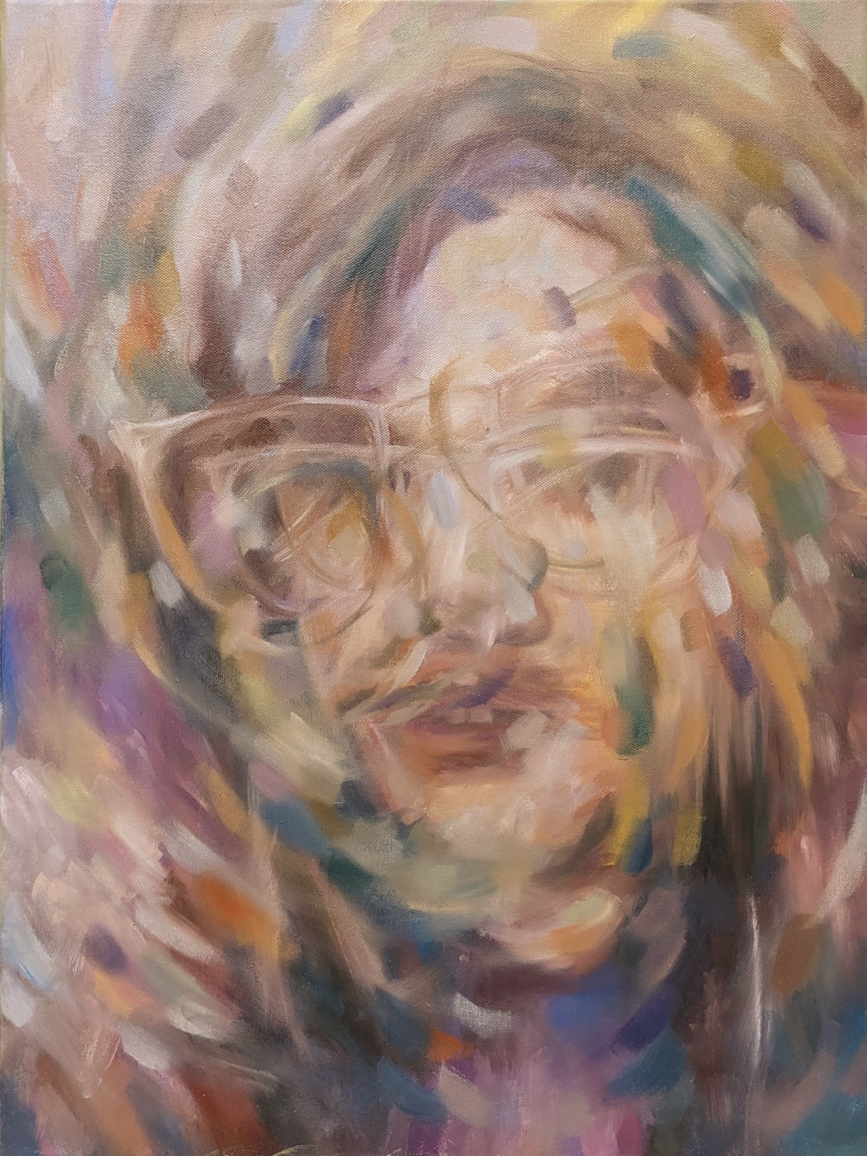 “For my honors thesis, I translated my experience of developmental prosopagnosia, also known as “face blindness,” into a series of four oil portraits. Prosopagnosia is a face-processing disorder that affects a person’s ability to identify, recognize, and judge faces, facial features, and expressions. This disorder is rare, so misinformation, misunderstanding, and stigma are common. I pursued this inquiry by researching prosopagnosia and the experiences of others with it, exploring my own experience through introspective exercises, and observing the work of other artists surrounding the topic. Throughout this process, my depiction of the visual memory I experience continuously evolved, varying drastically in style, composition, and representation as I discovered more about myself as a case study for the disorder. The final product of my research depicts prosopagnosia through warped abstractions and color distortion of the figure to capture my visualization of the people in my life.”